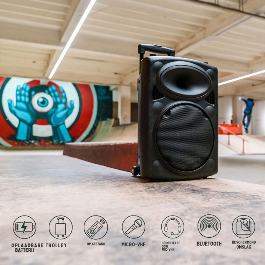 | Ongeopend in originele verpakking - PORT12VHF BT Draagbare Luidspreker 12 - 700W MAX - Met 2 Microfoons - VHF Afstandsbediening en Beschermhoes - Bluetooth USB SD - 5 tot 7u Autonomie - Speaker Box - Mobile DJ spreker batterij MyDJ Transit12-VHF BT-700W, is het uitgerust met een Boomer 12 "of 30 cm. Ideaal voor karaoke, entertainment of omroepinstallatie. MyDJ is de nieuwe benchmark in de wereld van geluid, met een breed scala van de sprekers op de batterij. |
