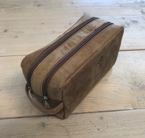 Overstock - ongebruikt in originele verpakking - Lederen toiletzak - 2 vakken met rits