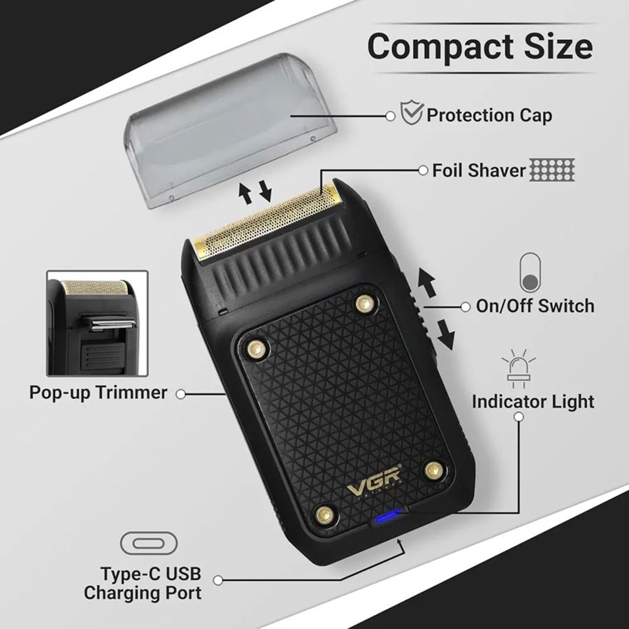 Overstock - ogebruikt in originele doos - VGR V-353 | Compacte Professionele Razor Elektrische Scheerapparaat | Baard Trimmer | ScheerMachine Folie Blade Pop-Up Trimmer Usb Oplaadbaar | Elektrische Scheerapparaat Shaver | Foil Shaver Triple Blade – Skul | Elektrisch Shaver -Gezicht/Hoofd Kaal |Zwart